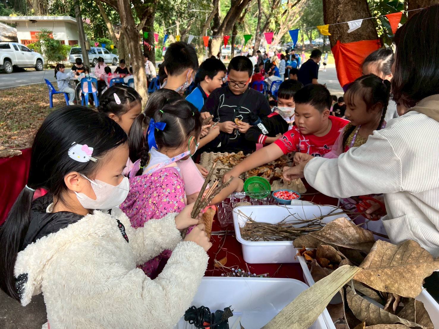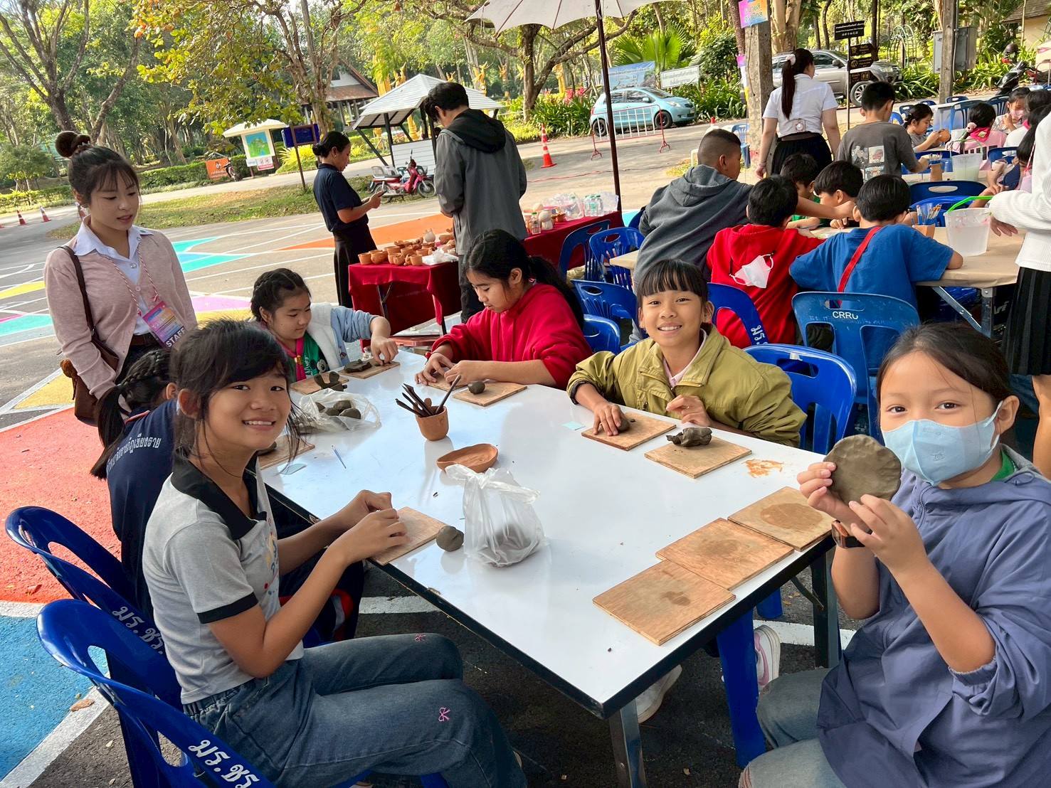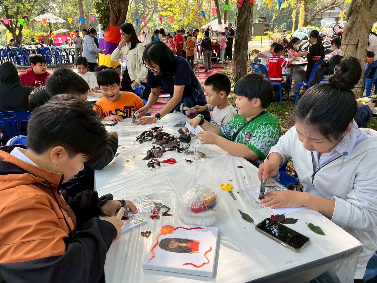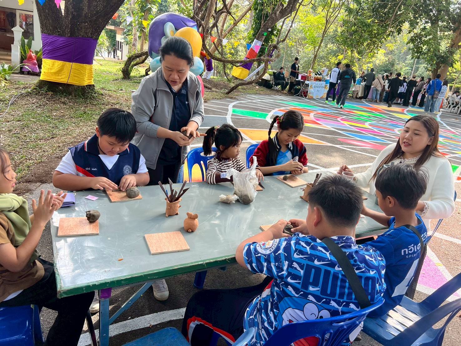 ฐานทำการ์ดใบไม้ ฐานงานศิลปะจากป่า ฐานปั้นดิน และฐานระบายสีเซรามิก ฯลฯ