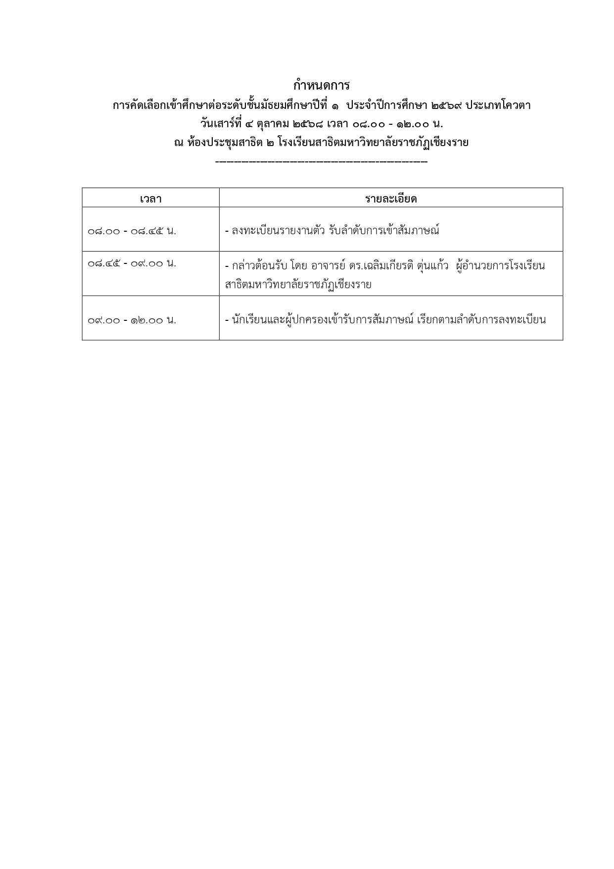 📄 นักเรียนที่มีรายชื่อผู้มีสิทธิ์ฯ ต้องมาสอบสัมภาษณ์พร้อมผู้ปกครอง